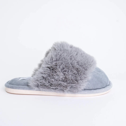 Sold outGREY FURRY MULE SLIPPERS