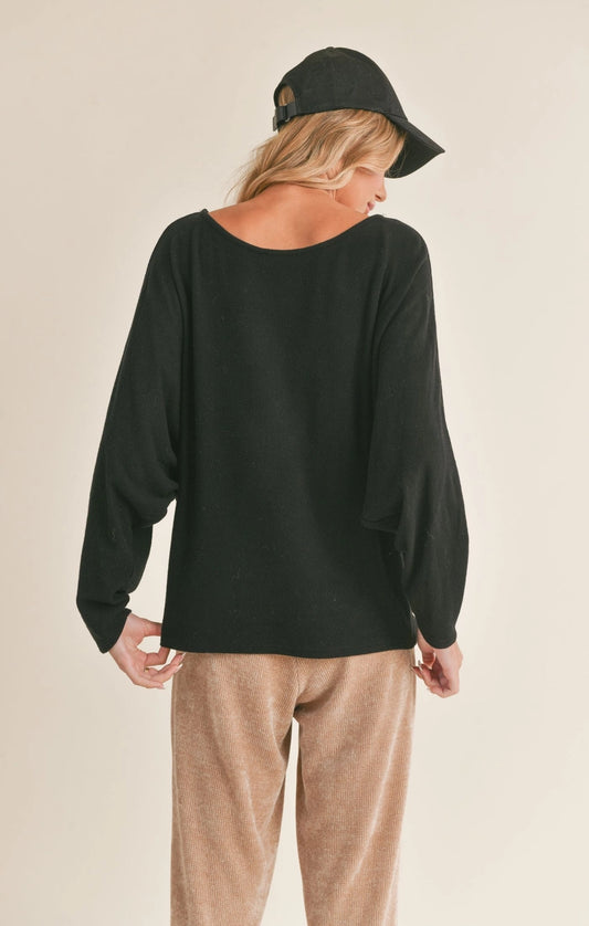 Sold outLENORE RIBBED PUFF SLEEVE TOP