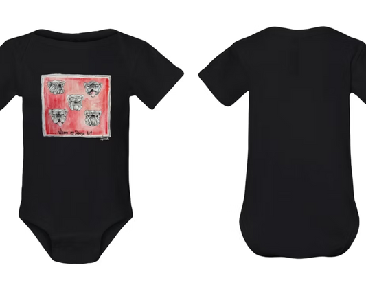 WHERE MY DAWGS AT BABY ONESIE by LEAH LATURELL ART