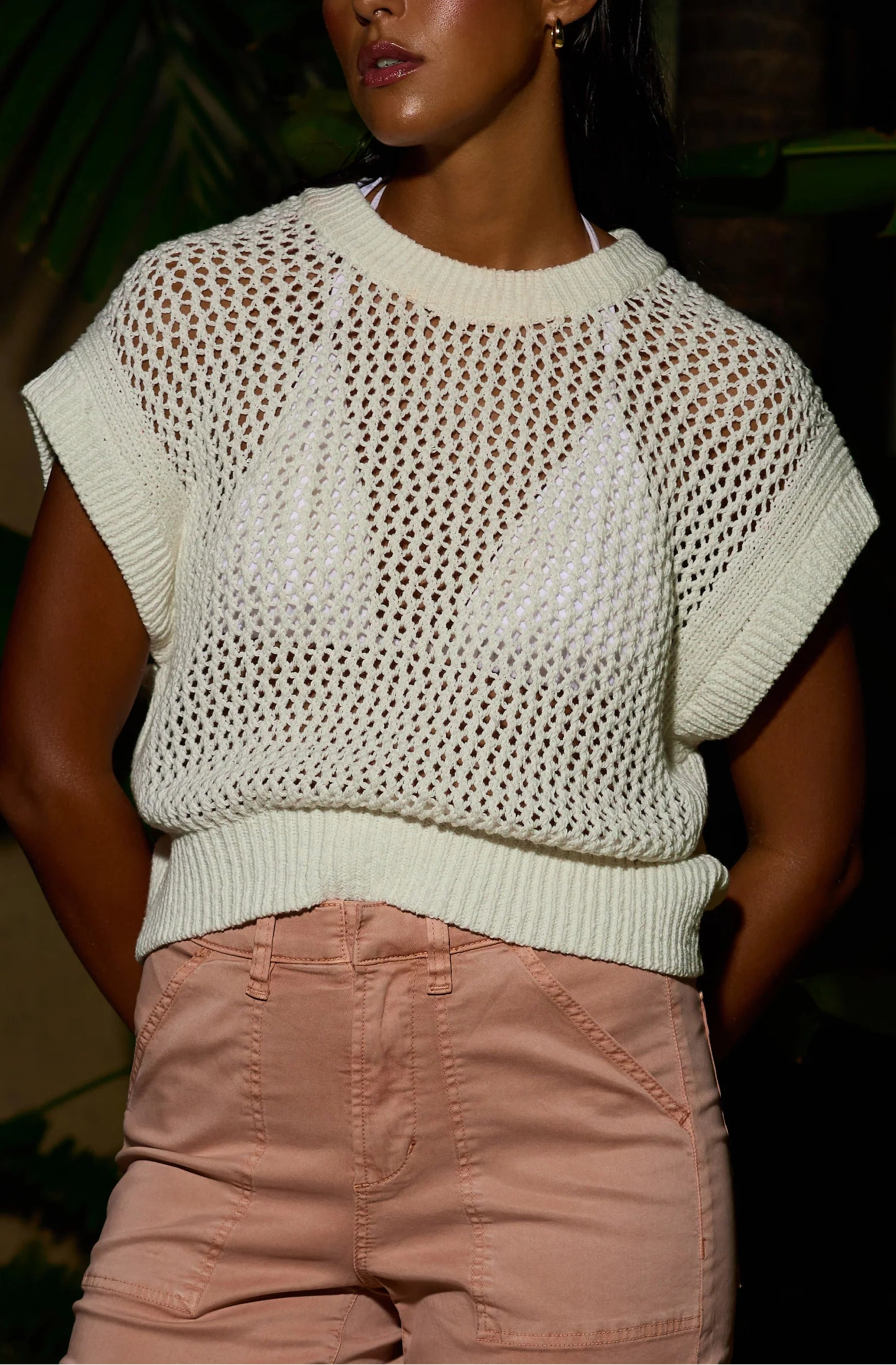 A beige platform slide sandal with cork-wrapped heel and crisscross leather straps.