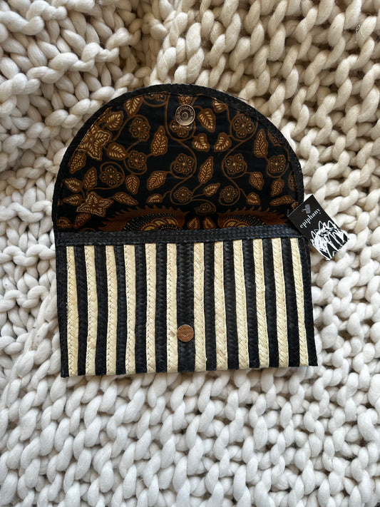 STRIPED BLACK & WHITE STRAW CLUTCH