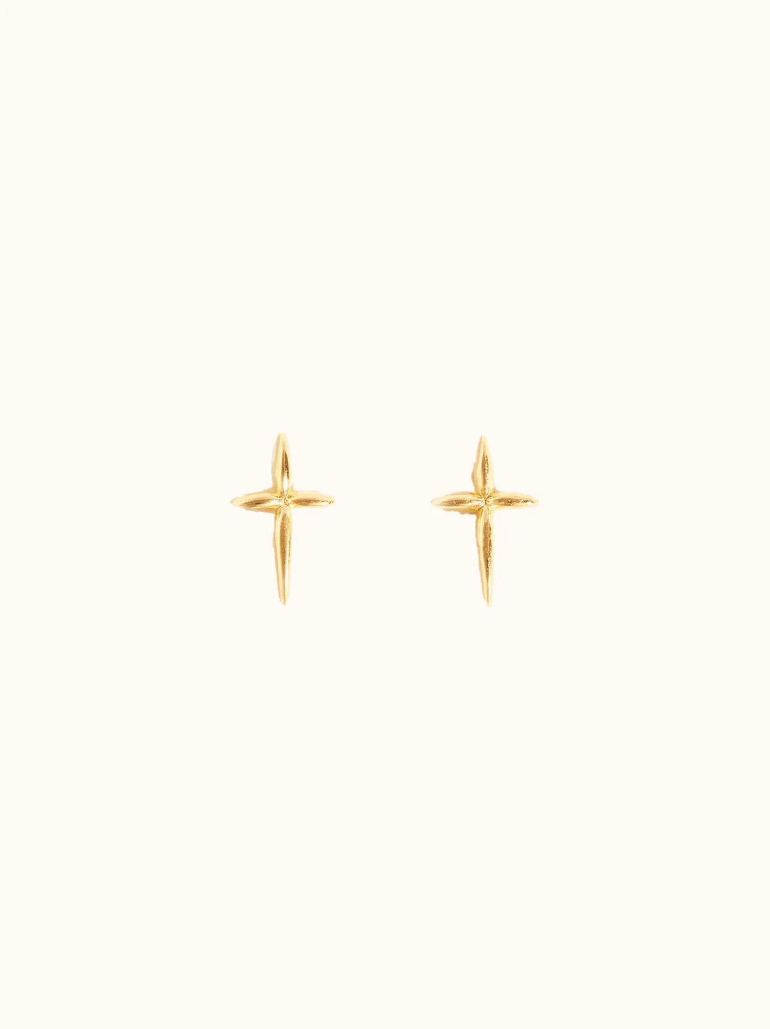 Capturing the image of dropping water in a cross shape, these vermeil studs stand out on their own or can be worn as part of an earring stack.
