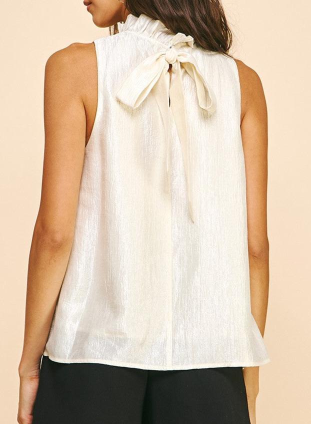 With a beautiful ribbon tie back, a detachable flower embellishment on the front, and a crinkle fabric, the "God With Us" top is the perfect addition to your wardrobe. The sleeveless design adds a touch of elegance, while the detachable flower allows for versatility. Complete your look with this stylish and comfortable top.