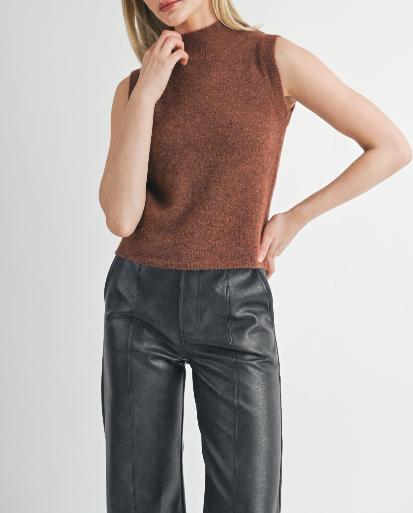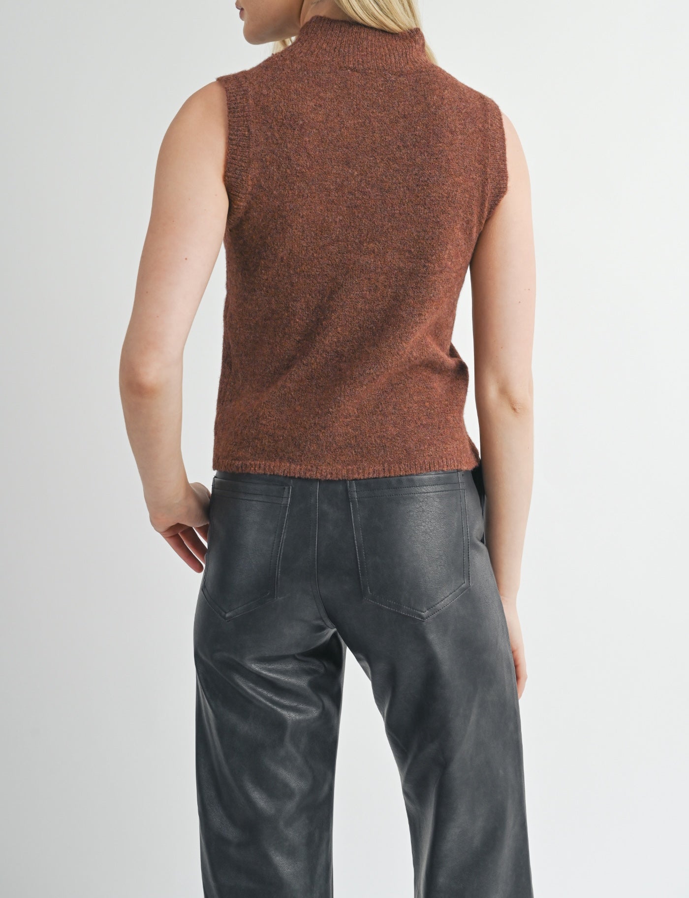 Stay warm and stylish with the "ALL I'M AFTER" Sweater. This sleeveless sweater tank features a flattering mock neck and a chic bow for added flair. Perfect for layering or as a standalone piece, it's the must-have addition to your wardrobe this season.