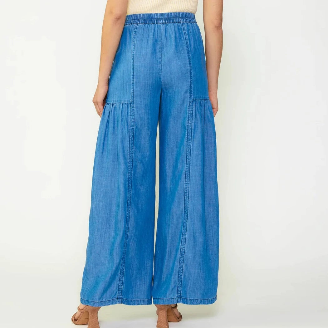 These chambray wide-leg pants are an instant favorite for beach getaways and weekend get-togethers alike. They're lightweight and effortless, featuring a pull-on design with roomy front pockets, an elasticized back waistband, and gentle gathers that enhance the flowy shape.