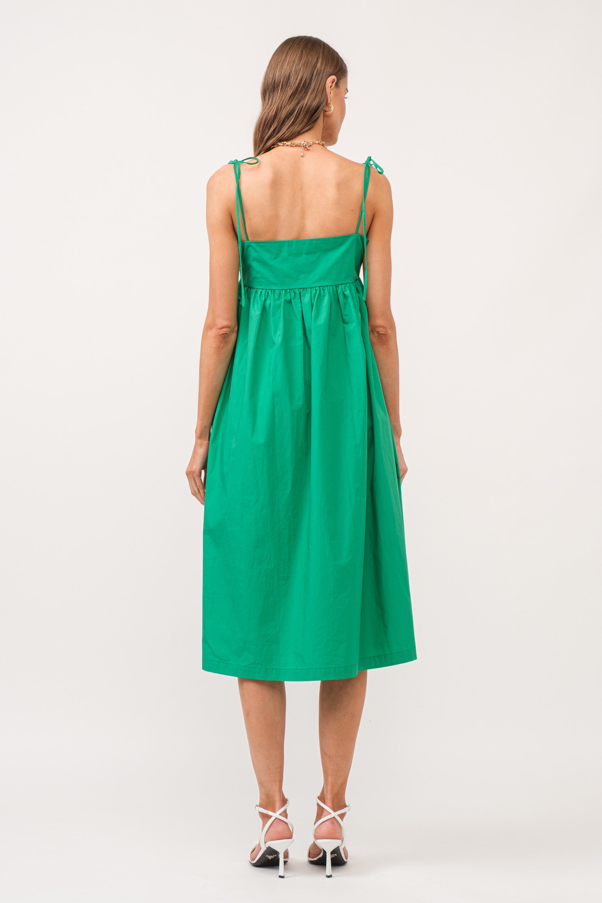 Elevate your summer style with our CHIARA COTTON POPLIN SUNDRESS. Made from premium poplin fabric, this dress features a detailed neckline and shoulder ties that can be tied into a bow for a touch of elegance. With a sophisticated midi length and lining for added comfort, this dress is perfect for any occasion.