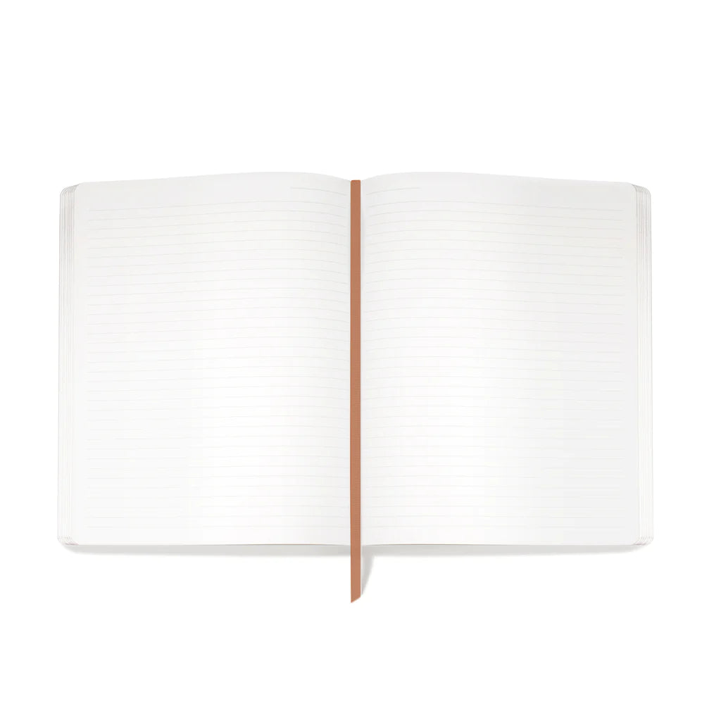 Large classic paperback journal with flexible textured cover featuring exclusive artwork by Megan Galante, gold gilded edges, and ribbon bookmark.