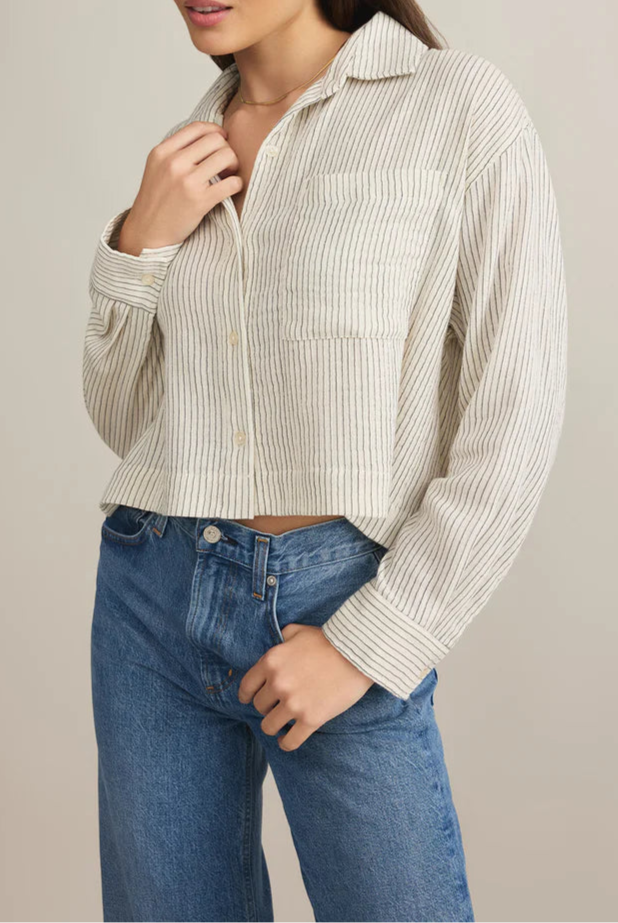 Relaxed and breezy, this yarn-dyed striped button-up is your ultimate go-to for layering or wearing loose. Made from lightweight cotton gauze, it’s a versatile piece with a timeless vibe.