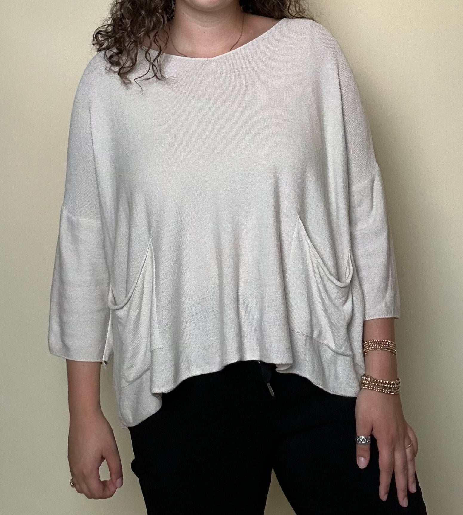 Stay cozy and stylish in our "Nowhere Else" sweater. This sweater top features quarter length sleeves and double front pockets, making it both comfortable and functional. Perfect for any occasion, this sweater will keep you looking and feeling your best wherever you go.