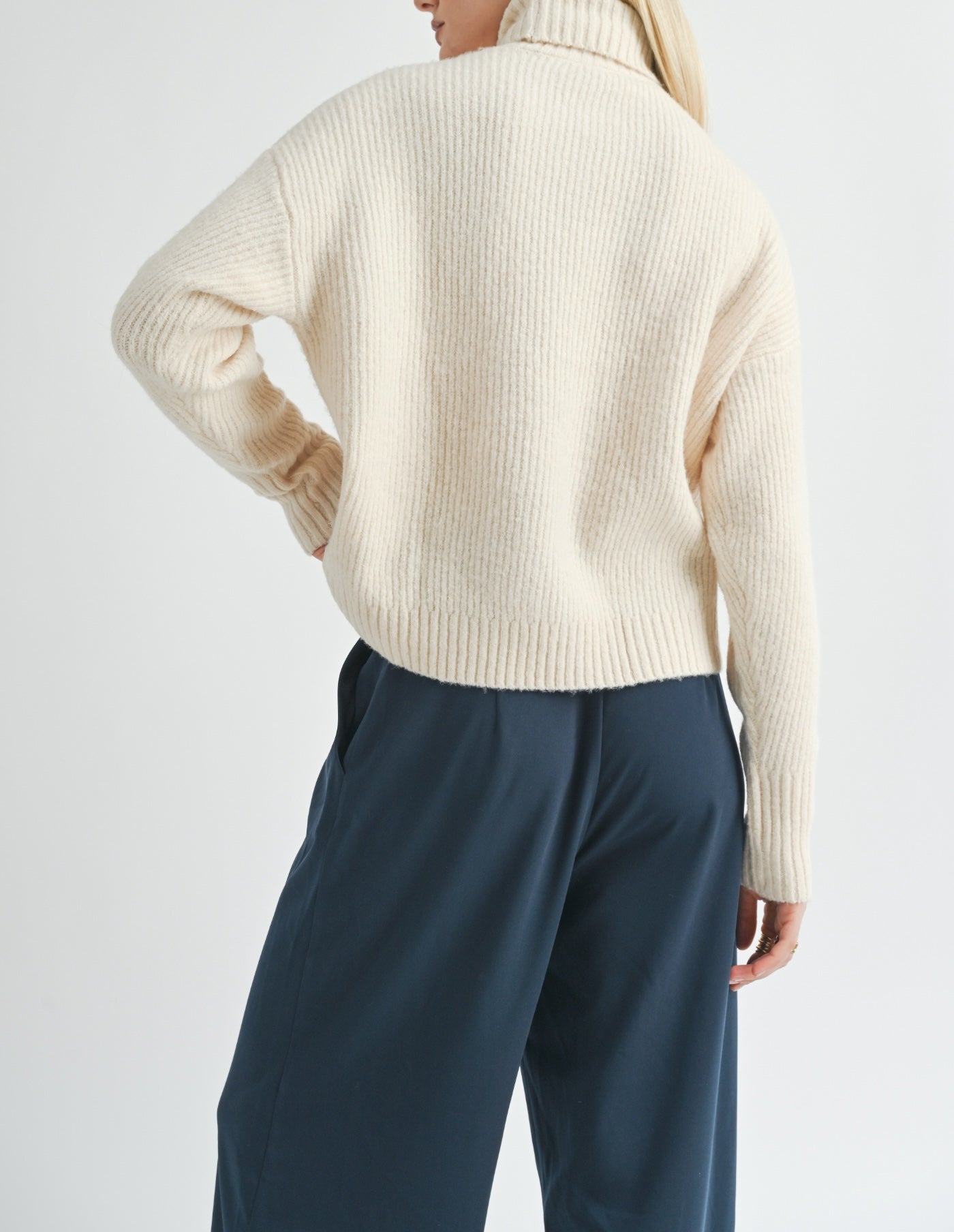 Stay warm and stylish with our "GRAVES TO GARDENS" sweater. This turtleneck pullover is ribbed for extra texture and comfort, and comes in a beautiful cream color that will easily match any outfit. Upgrade your wardrobe with this must-have piece.