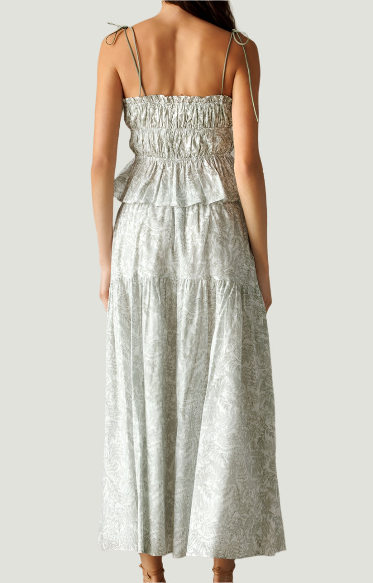 The "SING A NEW SONG" skirt combines vintage charm with a contemporary silhouette. Crafted in a delicate botanical print, the skirt features a tiered design that adds movement and elegance to your look. The flowy fabric is lightweight and breathable, perfect for warm-weather outings.