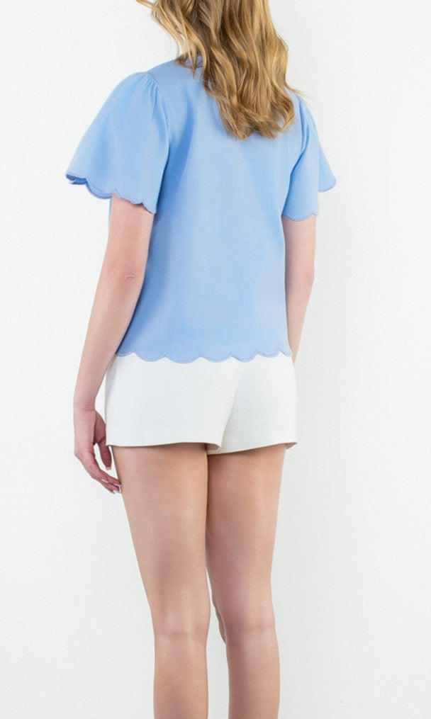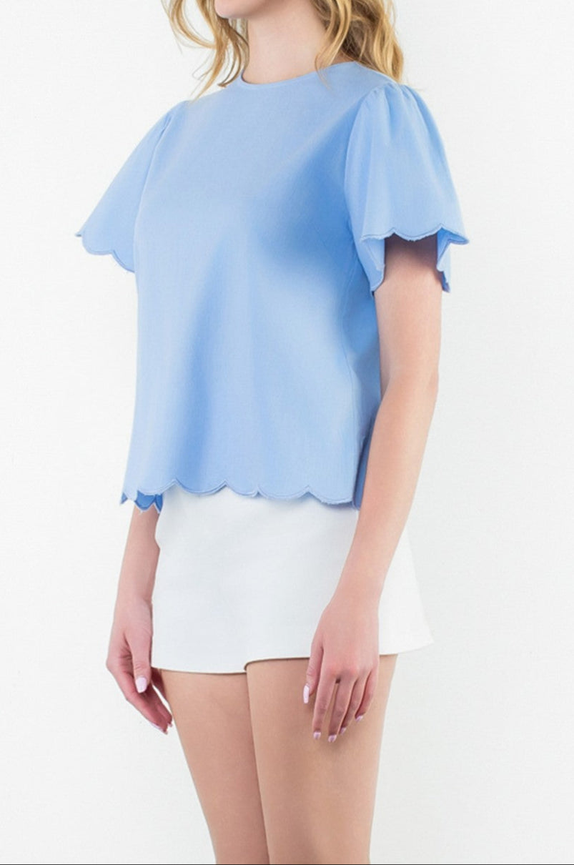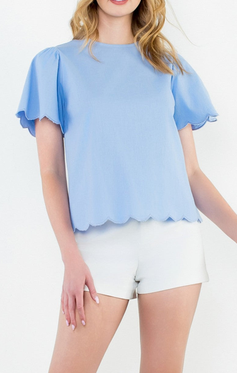 Stay stylish and comfortable in our "ABIDE IN HIM" top. This flowy flutter sleeve top features a unique wave detail, adding a touch of flair to your everyday look. The vibrant blue color is perfect for any season. Elevate your wardrobe with this must-have piece.