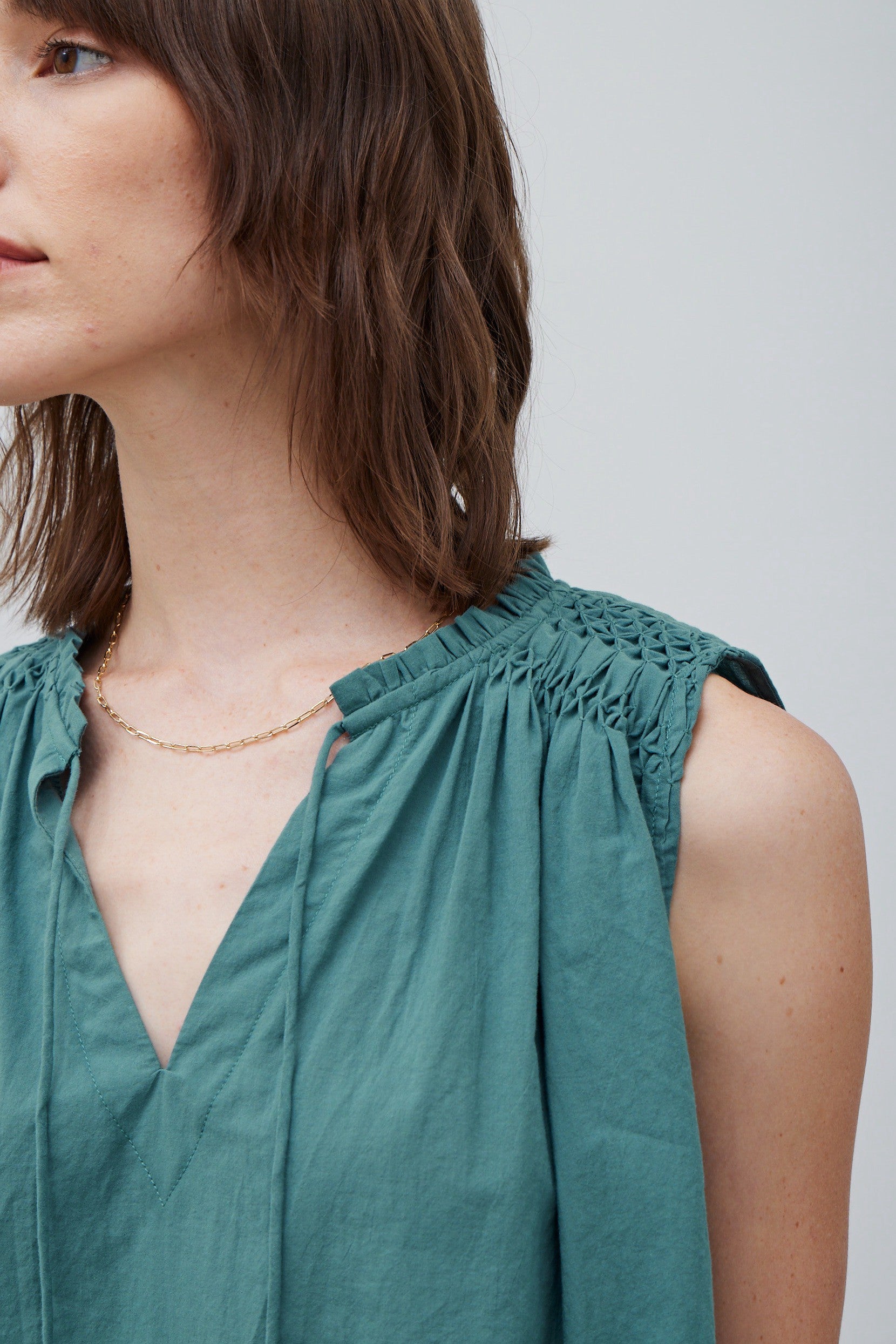 This simple yet stylish MIA TOP is the perfect addition to your wardrobe. Featuring smocked shoulders and a tie detail, it's ideal for a casual day or night out. Its sleeveless design makes it perfect for the warmer months, too.