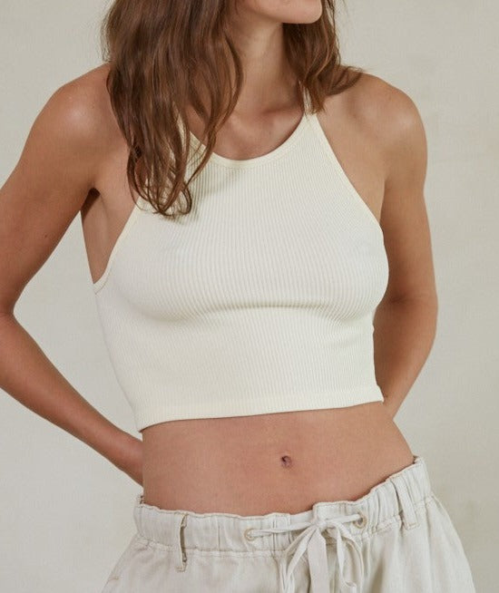 Get ready to fall in love with our "KNOWN" tank top! This halter style tank boasts a seamless and ribbed design for ultimate comfort. Available in cream and vintage mocha, you'll never want to take it off. Show off your style and feel confident in this must-have tank.