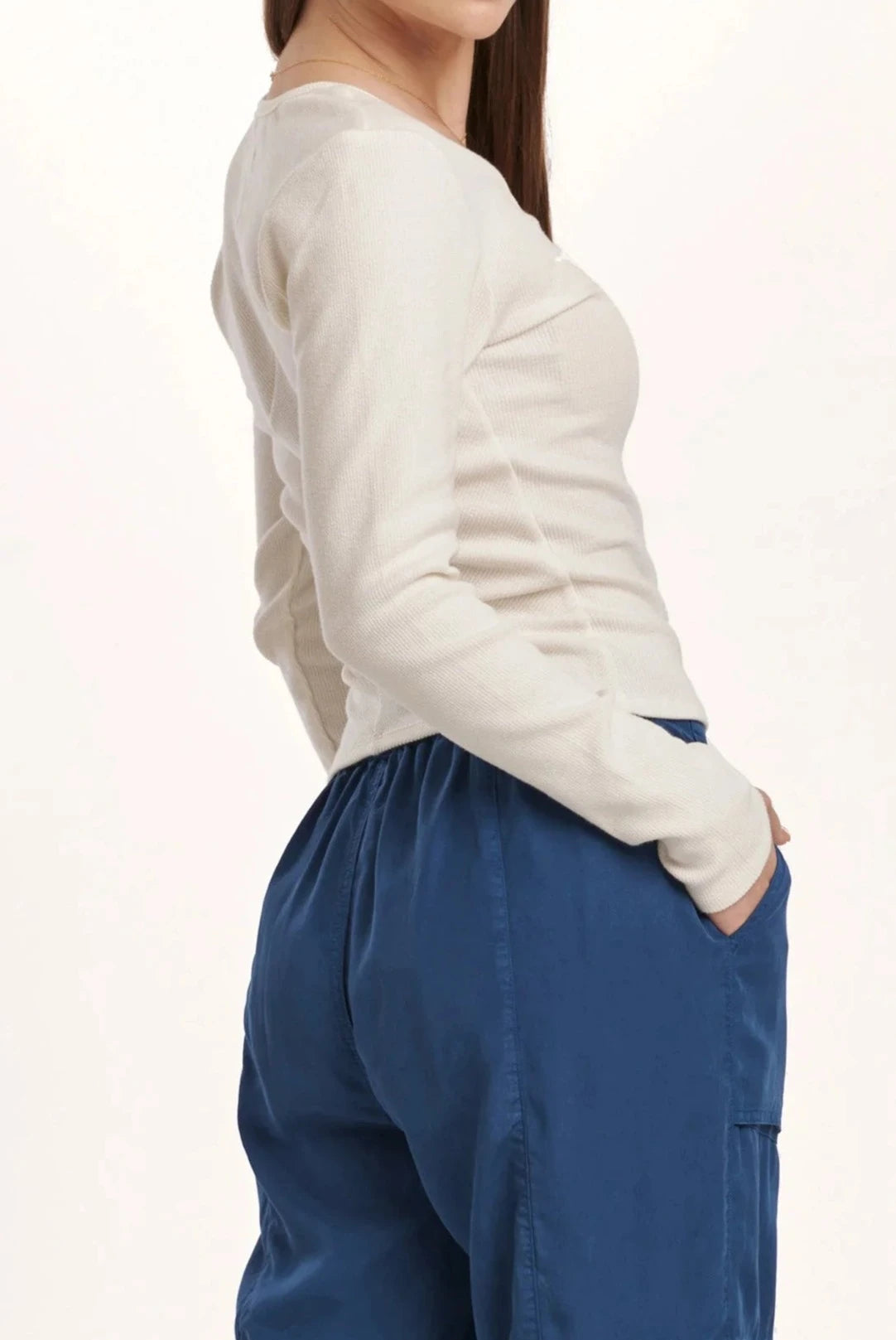 Get ready for a touch of "Grace and Peace" with our versatile top. Choose from either a classic white or dark moss color with a flattering V neck and ribbed texture. Featuring a comfy self neck band and long sleeves, this top will bring both style and comfort to your wardrobe.