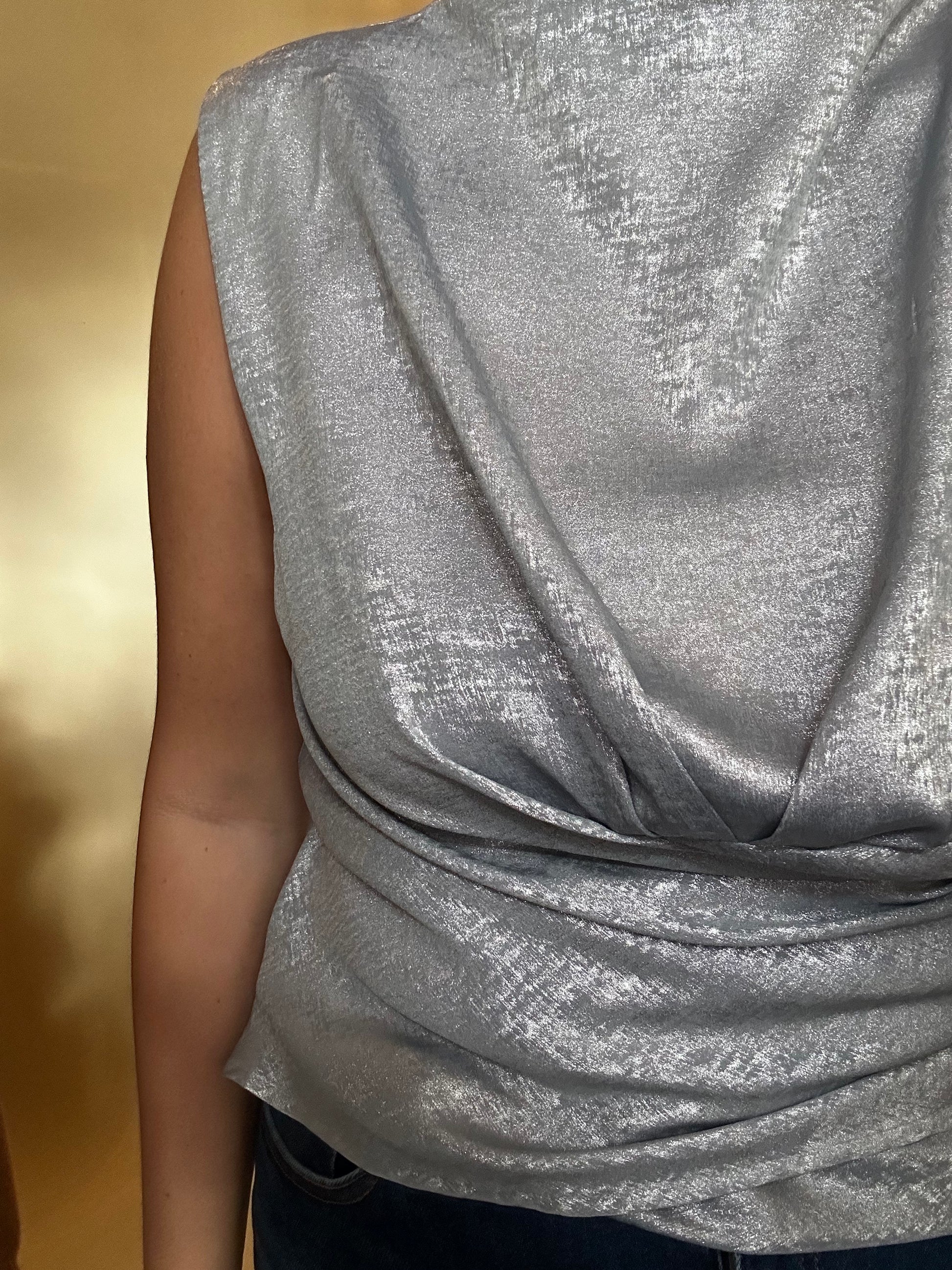 Get ready to spread love with our "BE LOVED" top! This metallic top features a flattering mock neck and side wrap design. The button closure at the neck adds a touch of elegance, while the cowl neck adds a touch of comfort. Showcasing your unique style has never been easier!