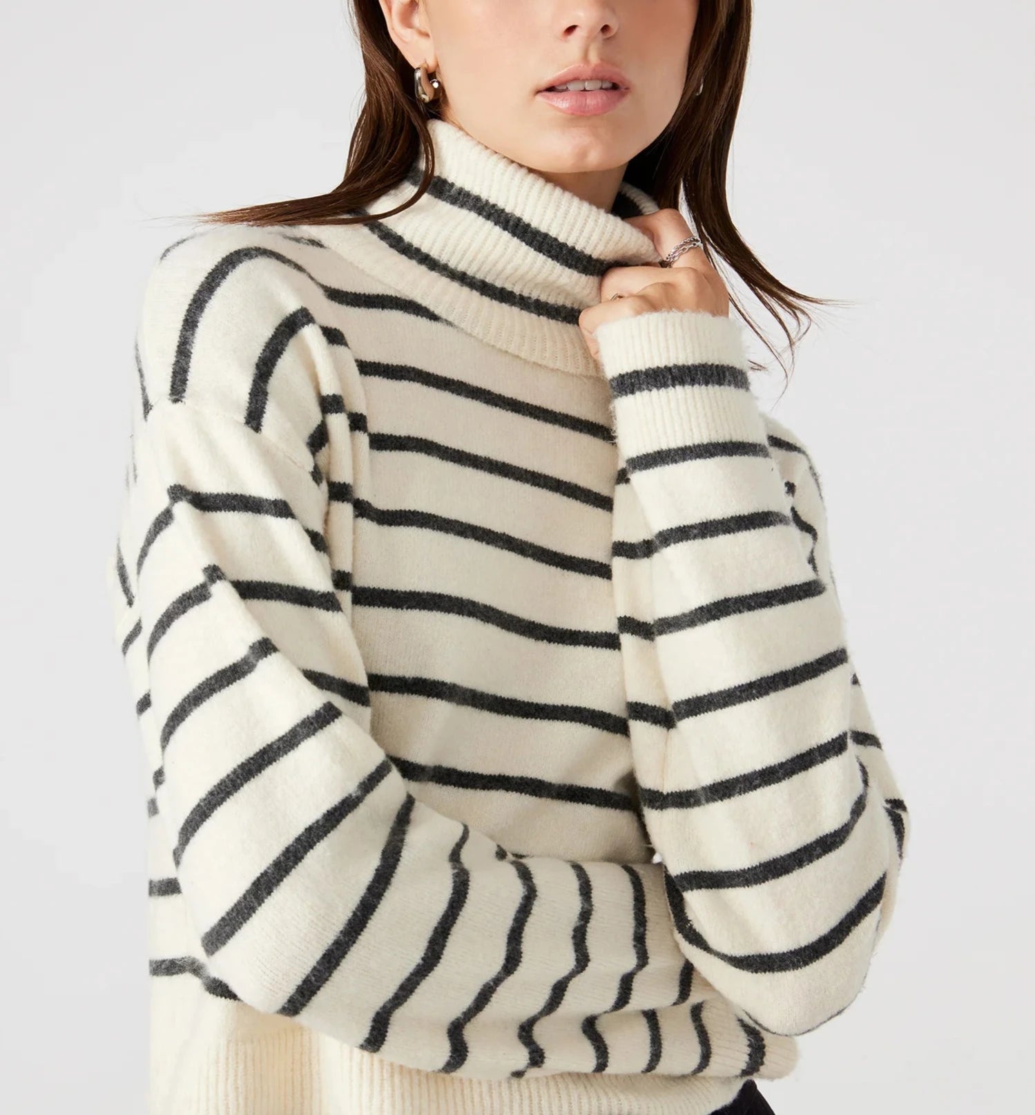 Stay cozy and stylish with our "Bride of Christ" sweater. This ivory and white sweater features a flattering mock neck and chic stripes, while the bell flare sleeves add a touch of elegance. Perfect for any occasion, this sweater will keep you warm and fashionable.