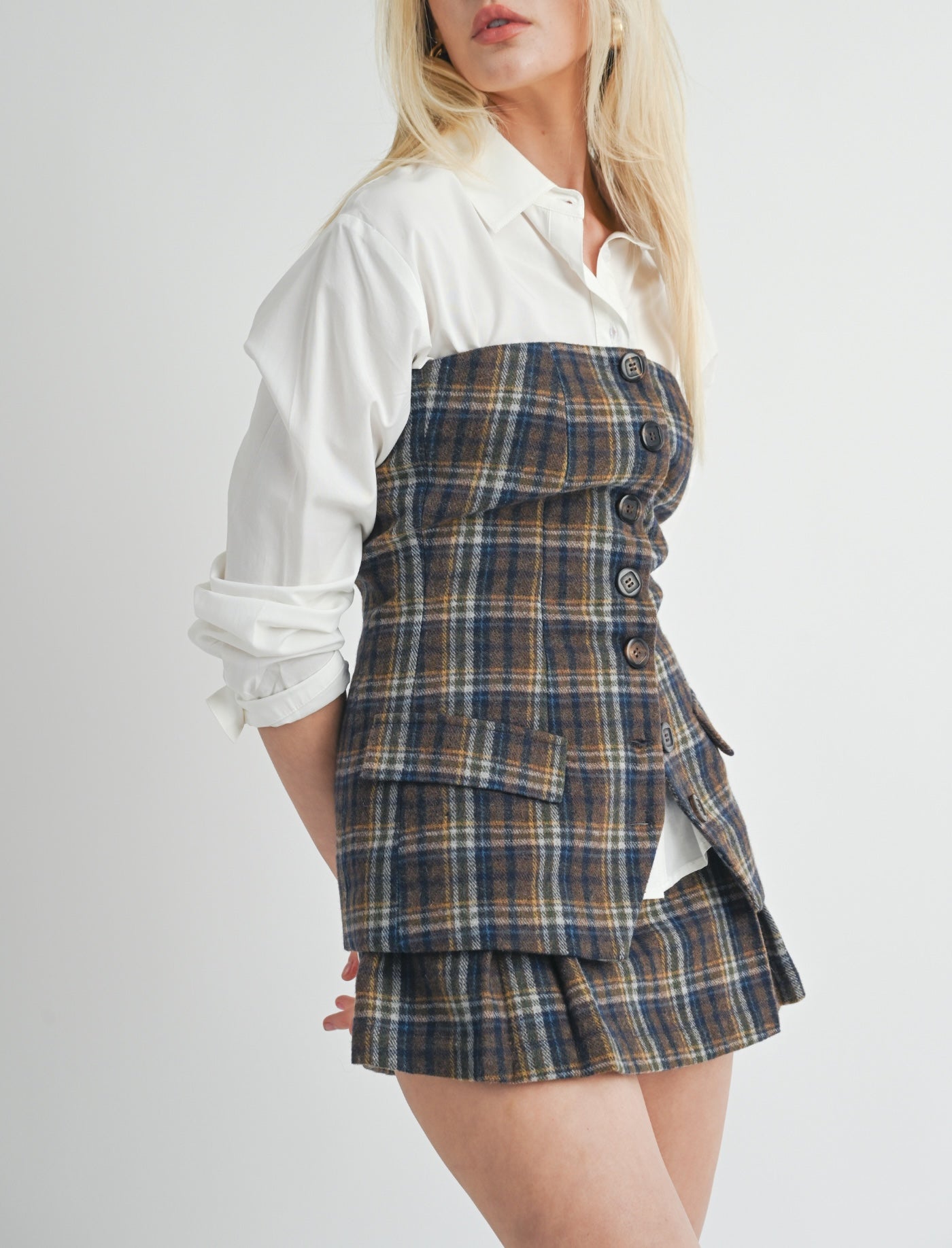 Get ready to take on the day with confidence in our "NO FEAR" TOP. This strapless bustier top features a convenient button down front and front utility pockets, providing both style and functionality. The plaid design adds a touch of edge to any outfit.