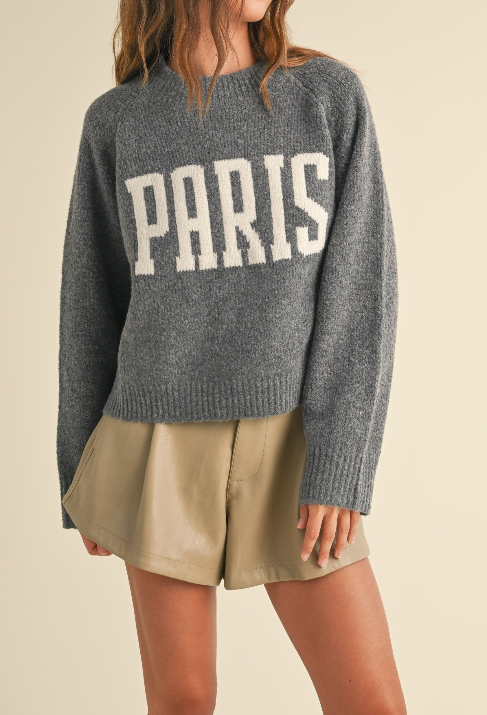 Look chic and cozy in our PARIS SWEATER TOP. This grey sweater features a boxy fit that is slightly oversized for a comfortable and trendy look. The PARIS lettering on the front adds a touch of stylish flair. Perfect for any fashion-forward individual looking to add a Parisian vibe to their wardrobe.