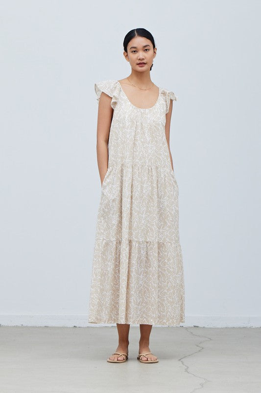 Our PRINTED SUMMER MIDI DRESS is perfect for sunny days. It features flutter sleeve and a beautiful floral pattern which make it both stylish and comfortable. Choose from two classic colors, and enjoy the flattering tiered skirt for a look you can dress up or down.