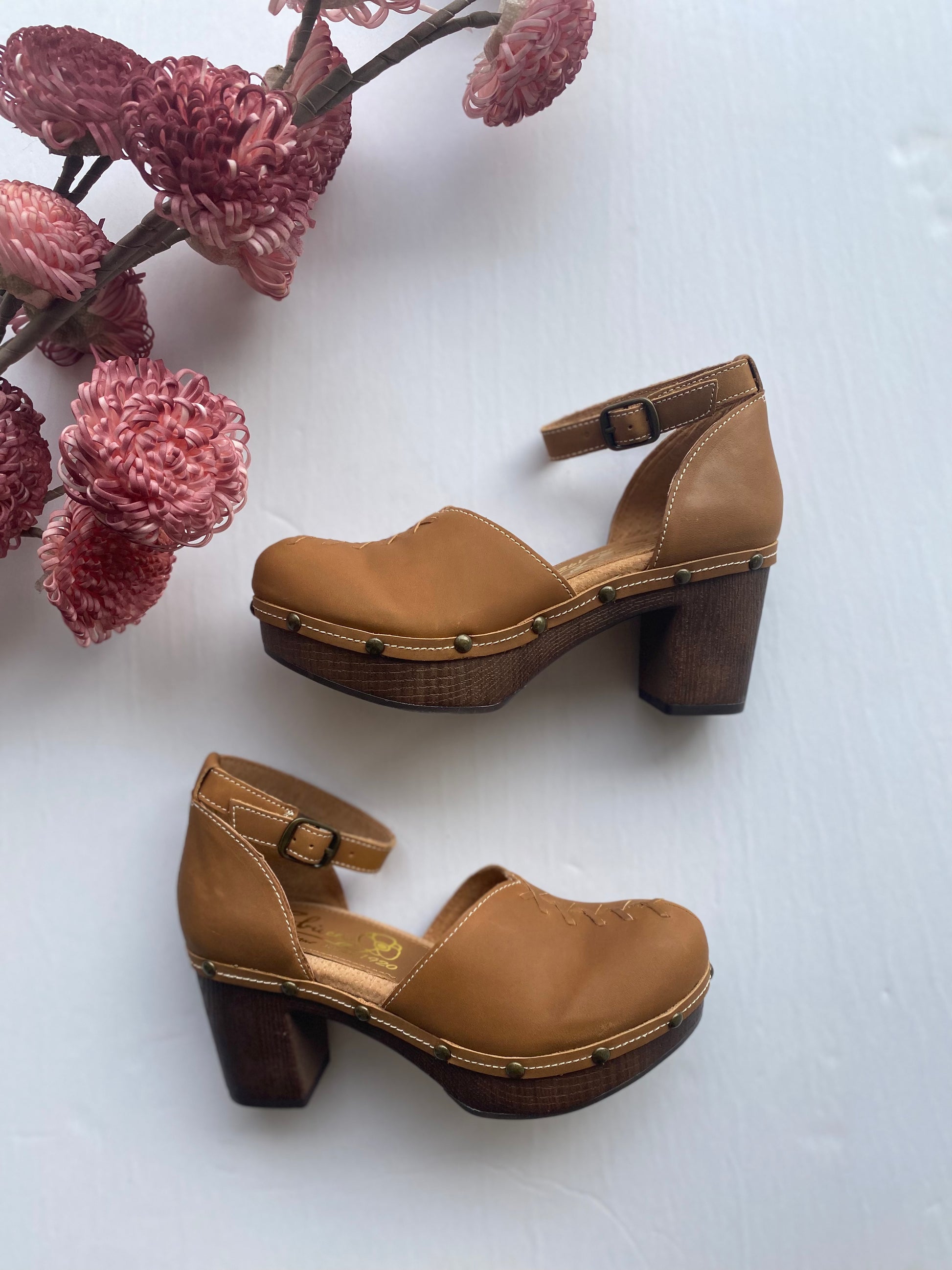 Reminiscent of styles you’d spot from Sbicca in the ‘70s, the Donerail leather clog has a genuine leather upper with a leather braid detail along the center seam, and an adjustable antique brass metal buckle on the ankle strap. They’re designed with soft suede leather lining and a double padded insole, set on a classic Sbicca chunky clog bottom. Style yours with floral maxi dresses or your favorite distressed denim mini.
