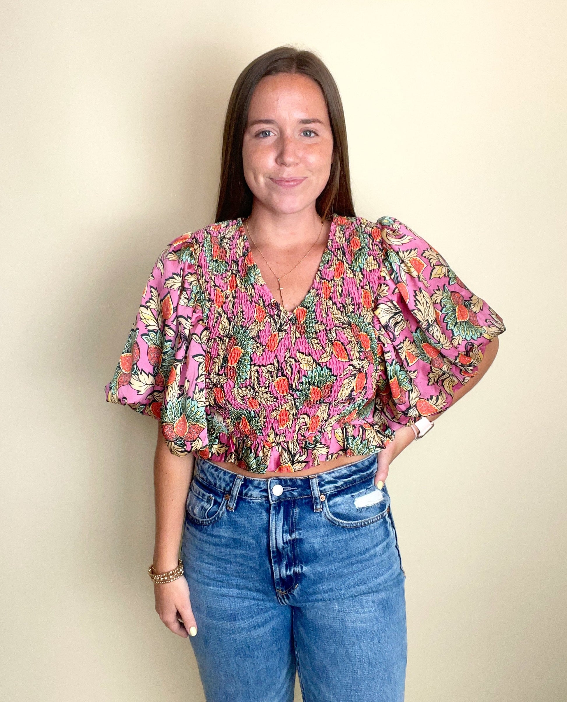 Look your best in the MADDEN TOP! Crafted with a smocked bodice and puff sleeves, this beautiful top will be sure to turn heads with its v-neckline and captivating pattern. Feel confident and stylish in this must-have top.