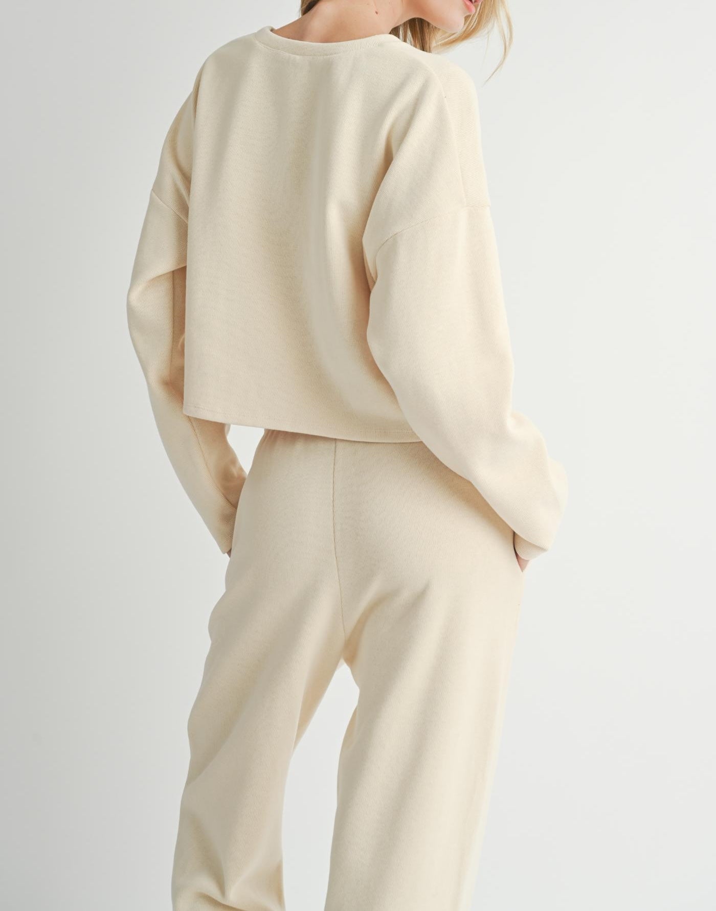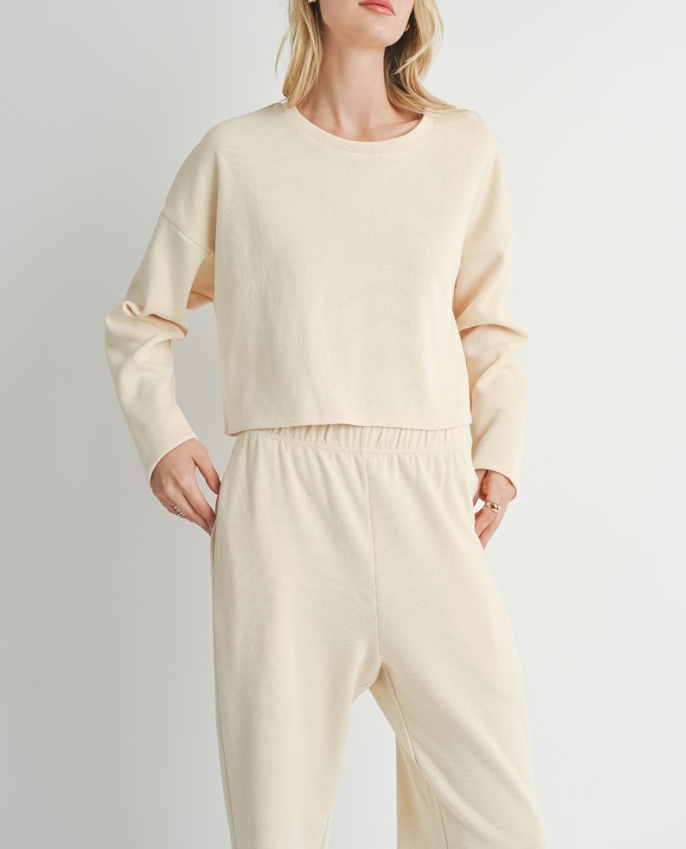 Elevate your everyday style with our "GRACE ALONE" crewneck. Constructed with a soft knit and a slightly cropped length, this cream top offers both comfort and a trendy, oversized fit. The scoop neck adds a feminine touch to this versatile piece.