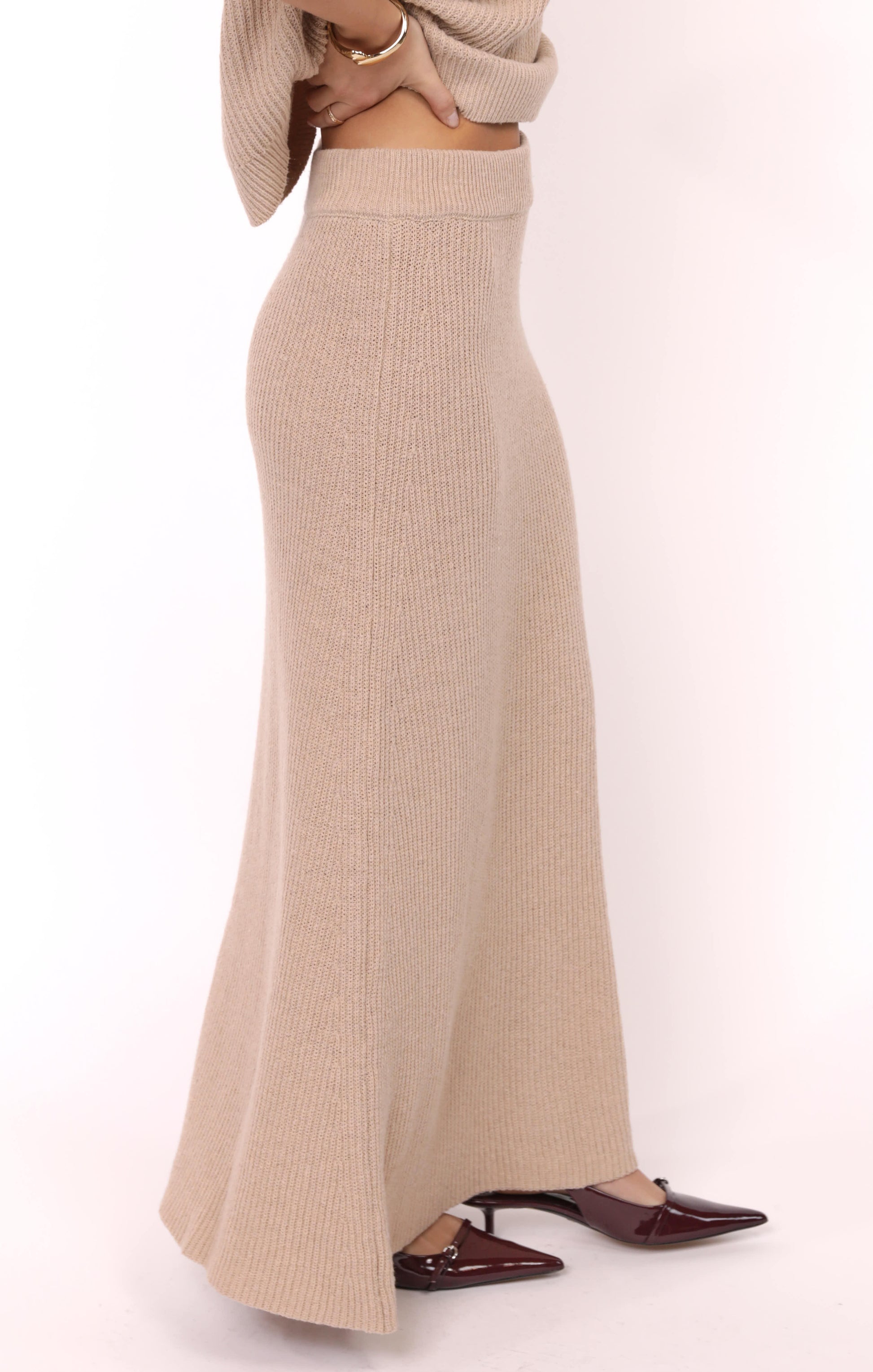 This sweater maxi skirt offers cozy knit comfort with a stretchy waistband for an easy, flattering fit. Designed as part of a versatile set, it pairs effortlessly with the matching top sold separately, making it simple to create a coordinated look. Perfect for layering or wearing on its own, this skirt combines style and ease for everyday wear.