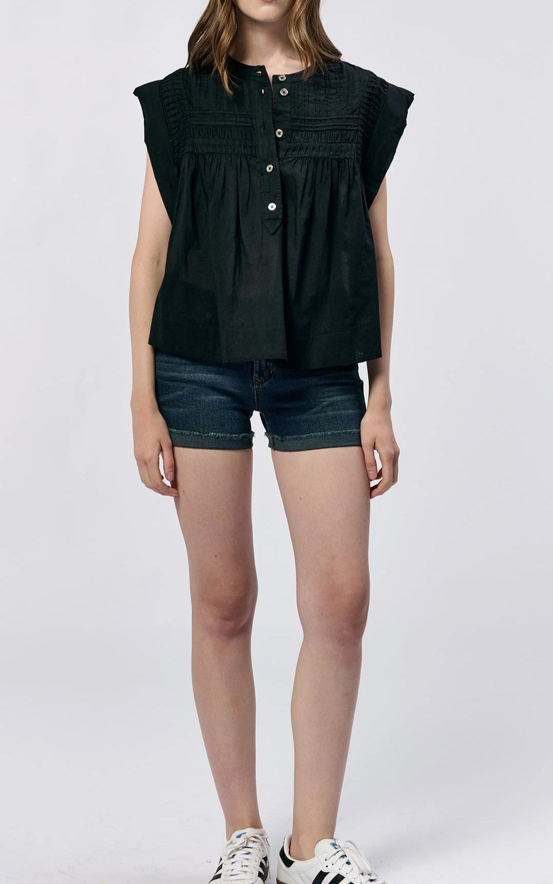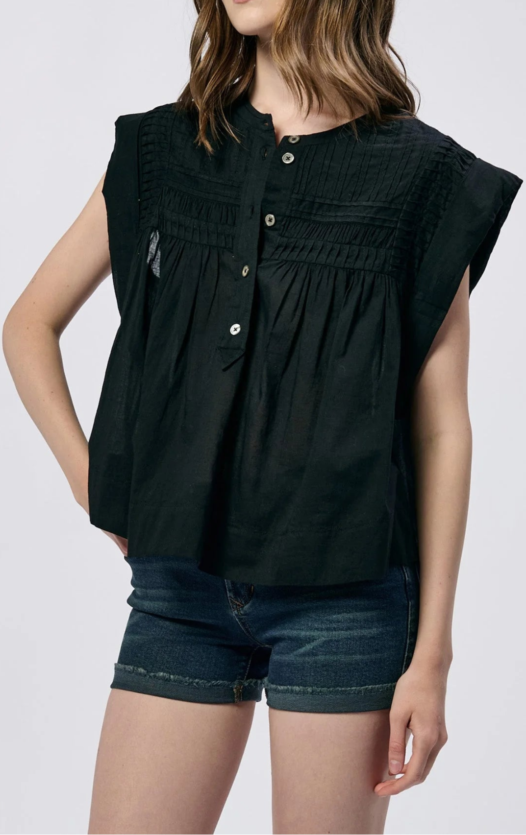 Introducing the "SPIRIT OF PEACE" TOP - a button down henley designed for peace and comfort. The sleeveless style by Dear John offers an easygoing and casual look, making it ideal for any occasion. Bring a sense of calm to your wardrobe with this must-have top.