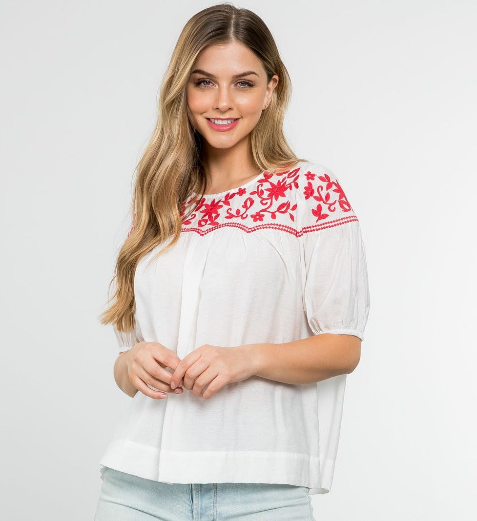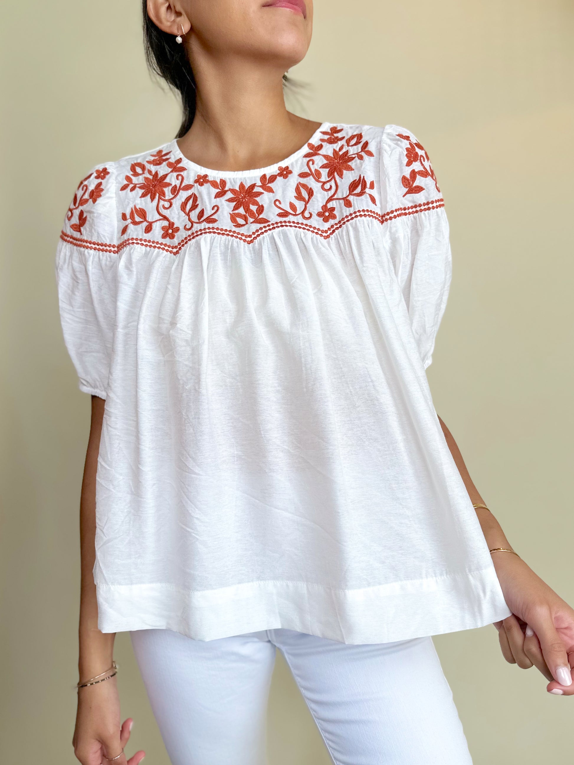 The Emma Top is perfect for days in the sun. Its breezy material and embroidered yolk keep you comfortable and stylish all day. And the puff sleeve adds the perfect statement piece to any summer outfit.