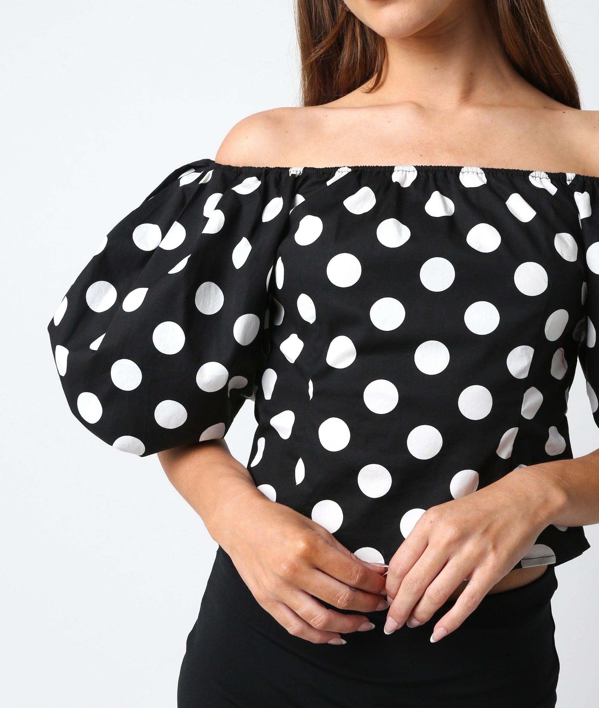 Upgrade your wardrobe with our "Promise Keeper" top. Featuring a playful polka dot design in classic black and white, this versatile top comes with puff sleeves that can be styled on or off the shoulder. Stay stylish and comfortable with this must-have piece.