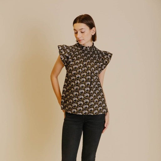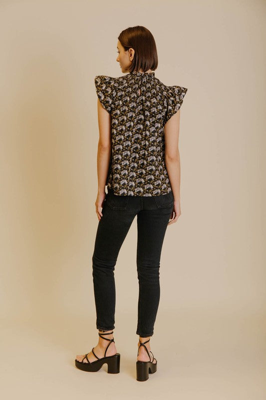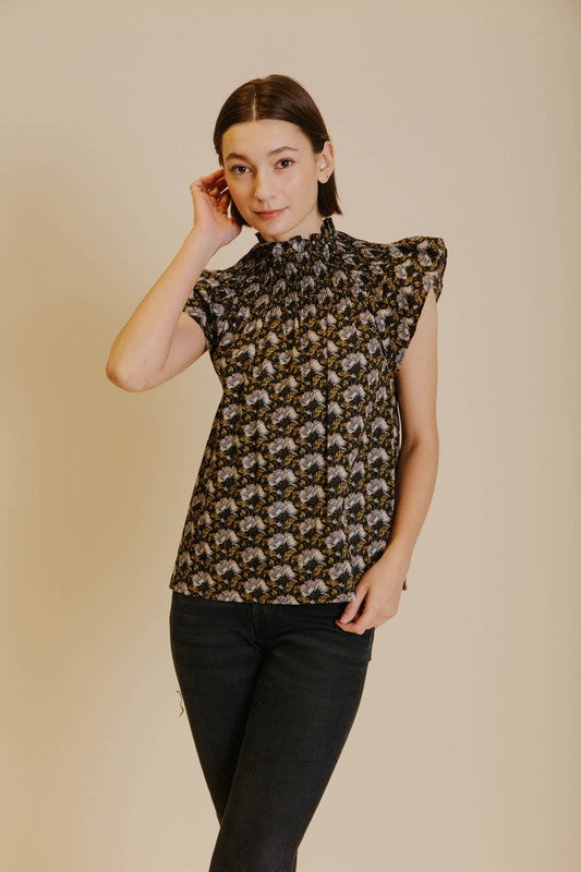 This delightful smocked top is a bright, fresh addition to any wardrobe. Its flutter sleeves add a playful touch to the vibrant print, making it perfect for transitioning into different seasons!