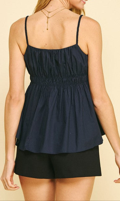 Embrace comfort and style with our "HE WILL GUIDE" TOP. This elegant solid ruffle cami features delicate shirring and smocking details that create a flattering silhouette. The spaghetti straps offer a feminine touch while providing easy wearability for any occasion. Perfect for pairing with your favorite bottoms for a look that transitions effortlessly from day to night.