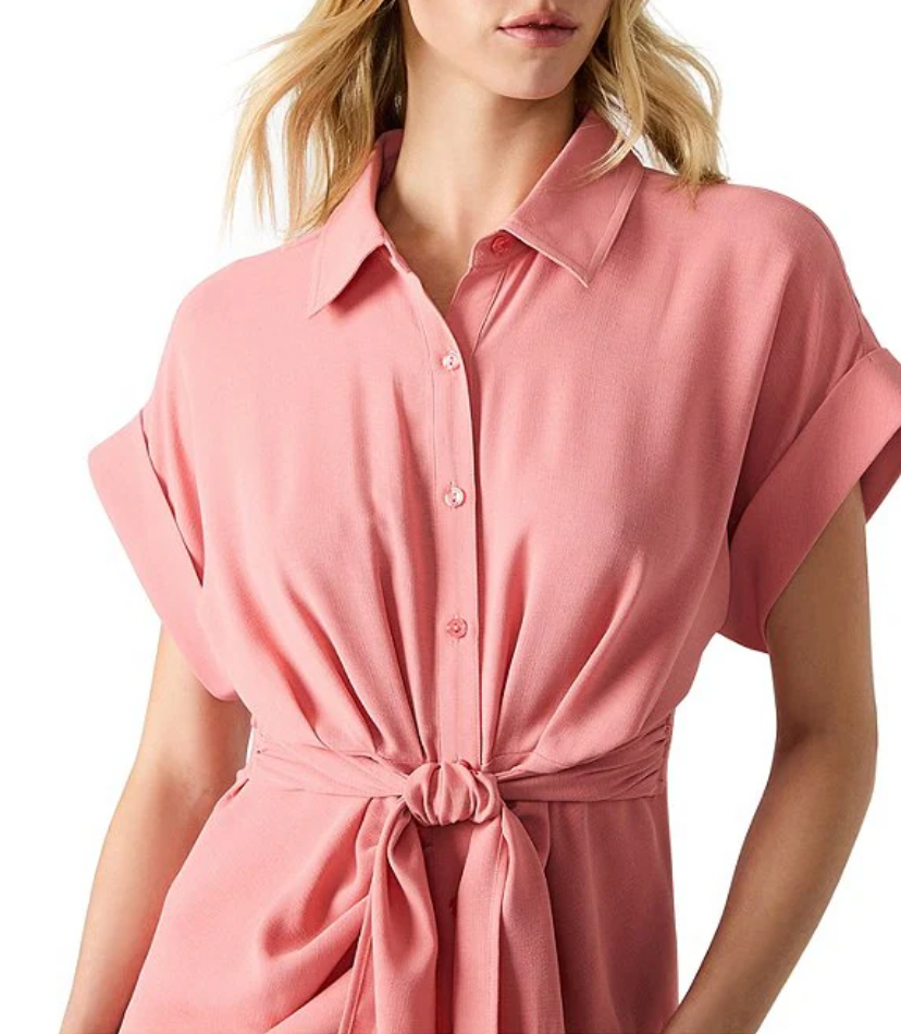 The "UNENDING LOVE" DRESS embraces timeless elegance with its refined point collar neckline and breezy short sleeves. This midi-length shirt dress creates a graceful silhouette that flatters your natural shape. The thoughtful tie waist detail allows for customizable comfort, while the practical button front closure makes dressing effortless. Perfect for creating memorable moments in a dress designed with care.