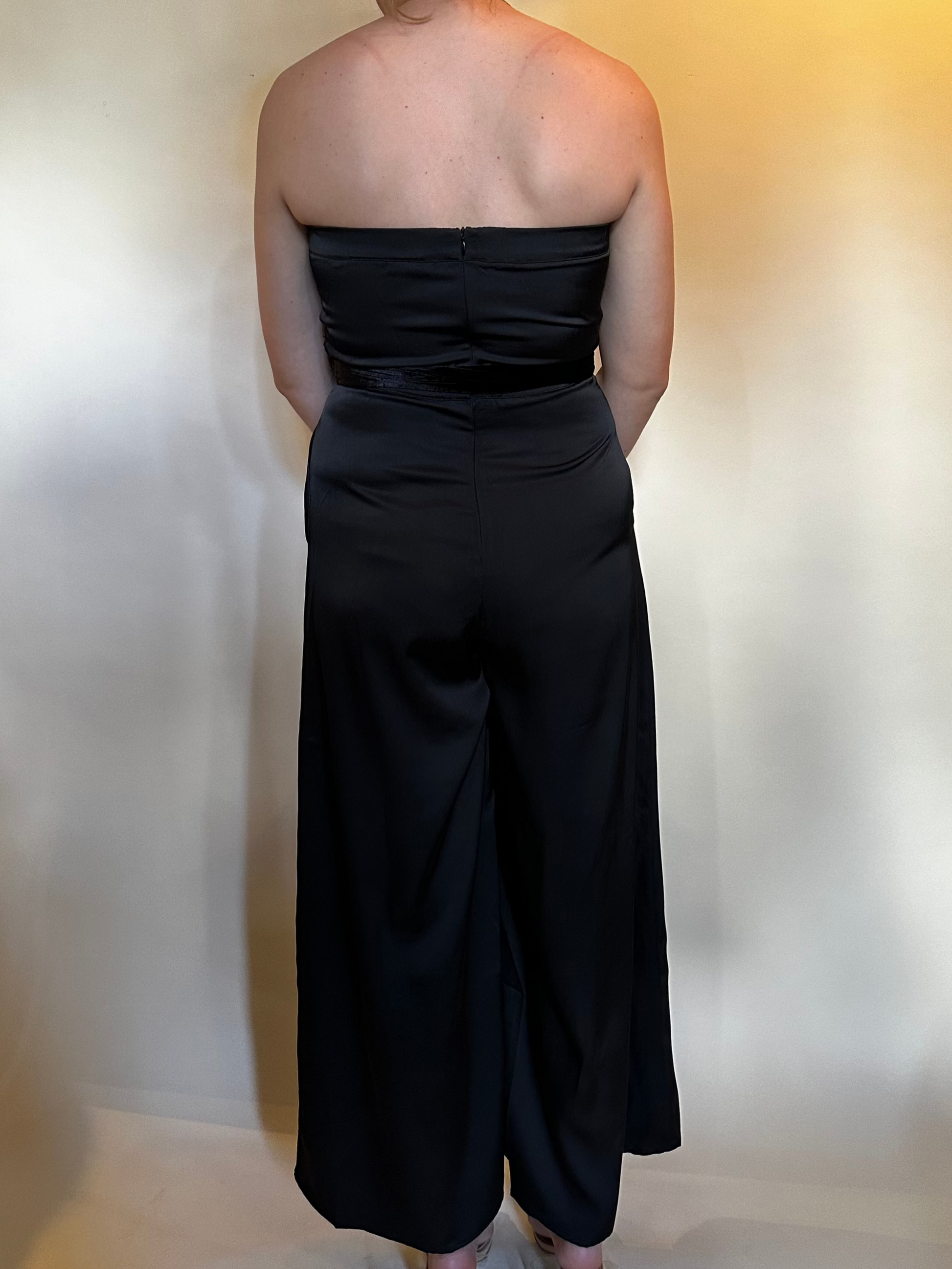 Experience the luxury and glamour of our "Greater Grace" jumpsuit. The strapless velvet design features a sequin top and back zipper closure for a sleek and stunning look. The wide leg and satin bottom offer comfort and style for any occasion. Elevate your wardrobe with this must-have piece.