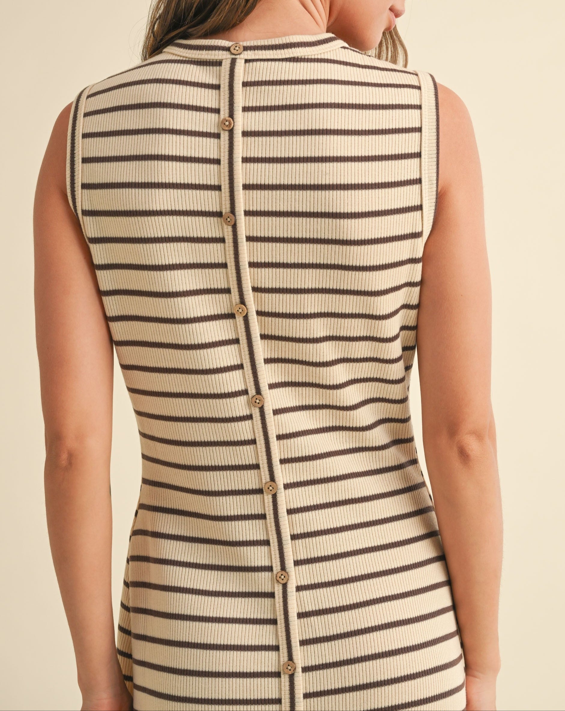 Upgrade your wardrobe with our "WE TRUST" Dress. This stylish maxi dress features a striped design and a soft, knitted fabric for ultimate comfort. The back button detail adds a unique touch to this versatile dress. Elevate your fashion game with this must-have piece.