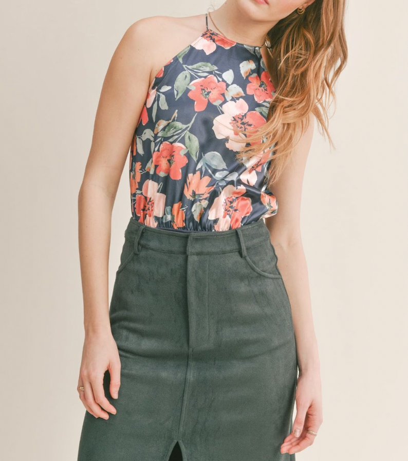 Effortlessly stylish and comfortable, the "I AM" Bodysuit features a sleeveless design with a beautiful floral pattern. The high neck adds a touch of elegance, while the back keyhole closure adds a hint of charm. Perfect for any occasion, this bodysuit will have you feeling confident and chic.
