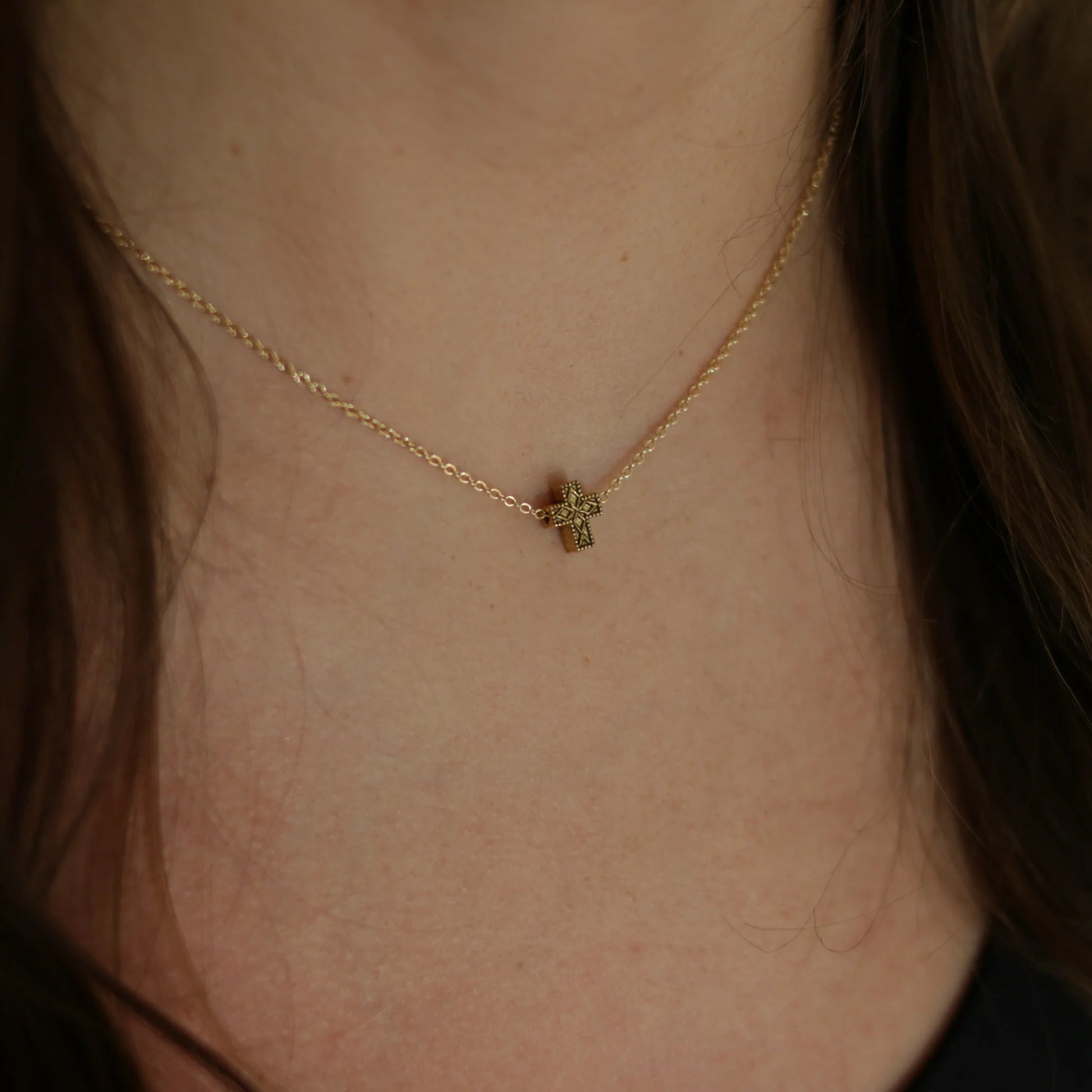 This sweet dainty cross necklace is great for yourself or for a gift! Choose the all gold version or mix it up with a silver cross on gold chain.