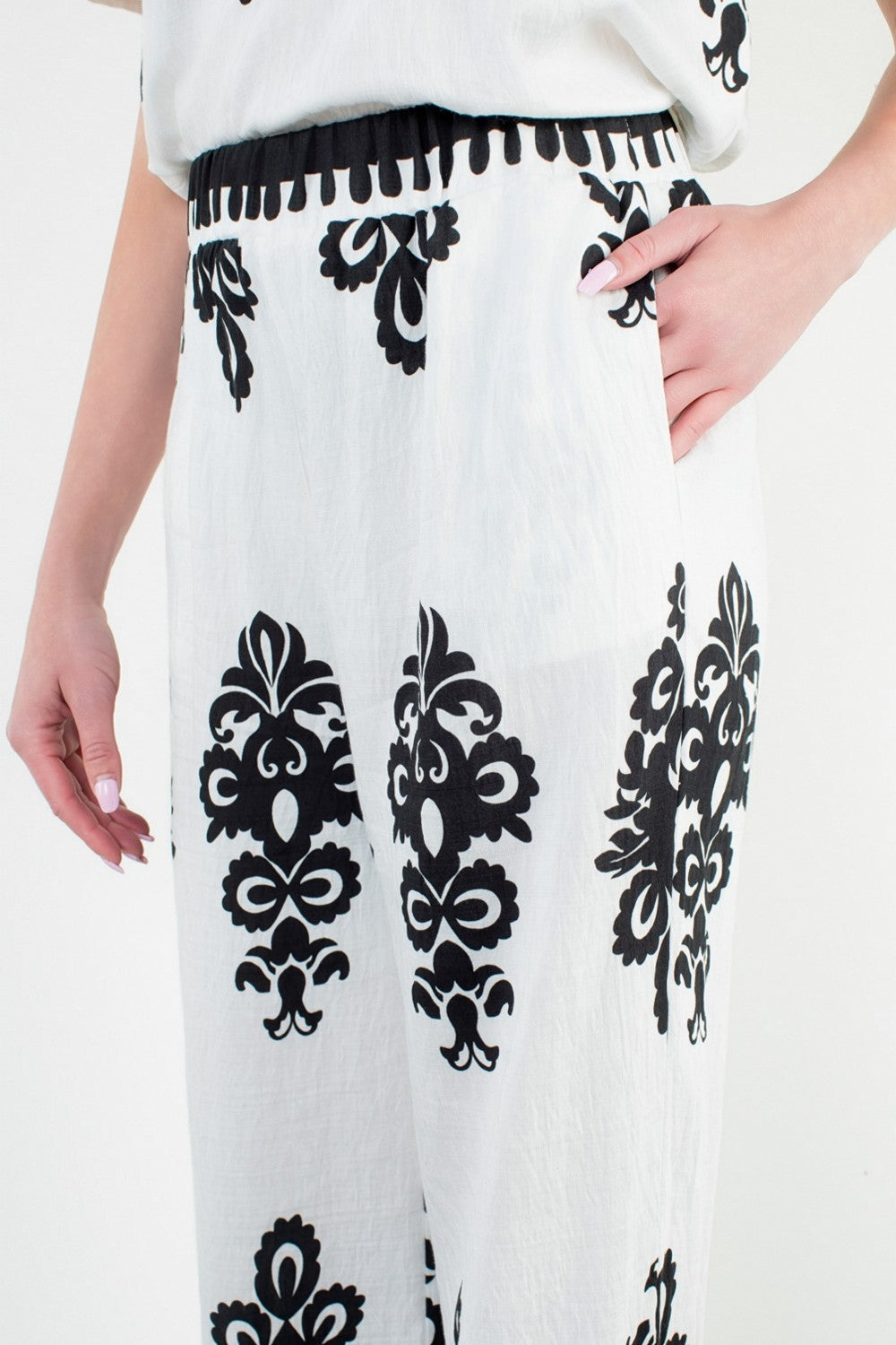 The "GRATITUDE" pants are a stylish and functional addition to your wardrobe. The wide leg design provides a comfortable and flattering fit, while the black and white print adds a touch of sophistication. Plus, with pockets, you'll have a convenient place to store your essentials. Embrace comfort and style with these pants.