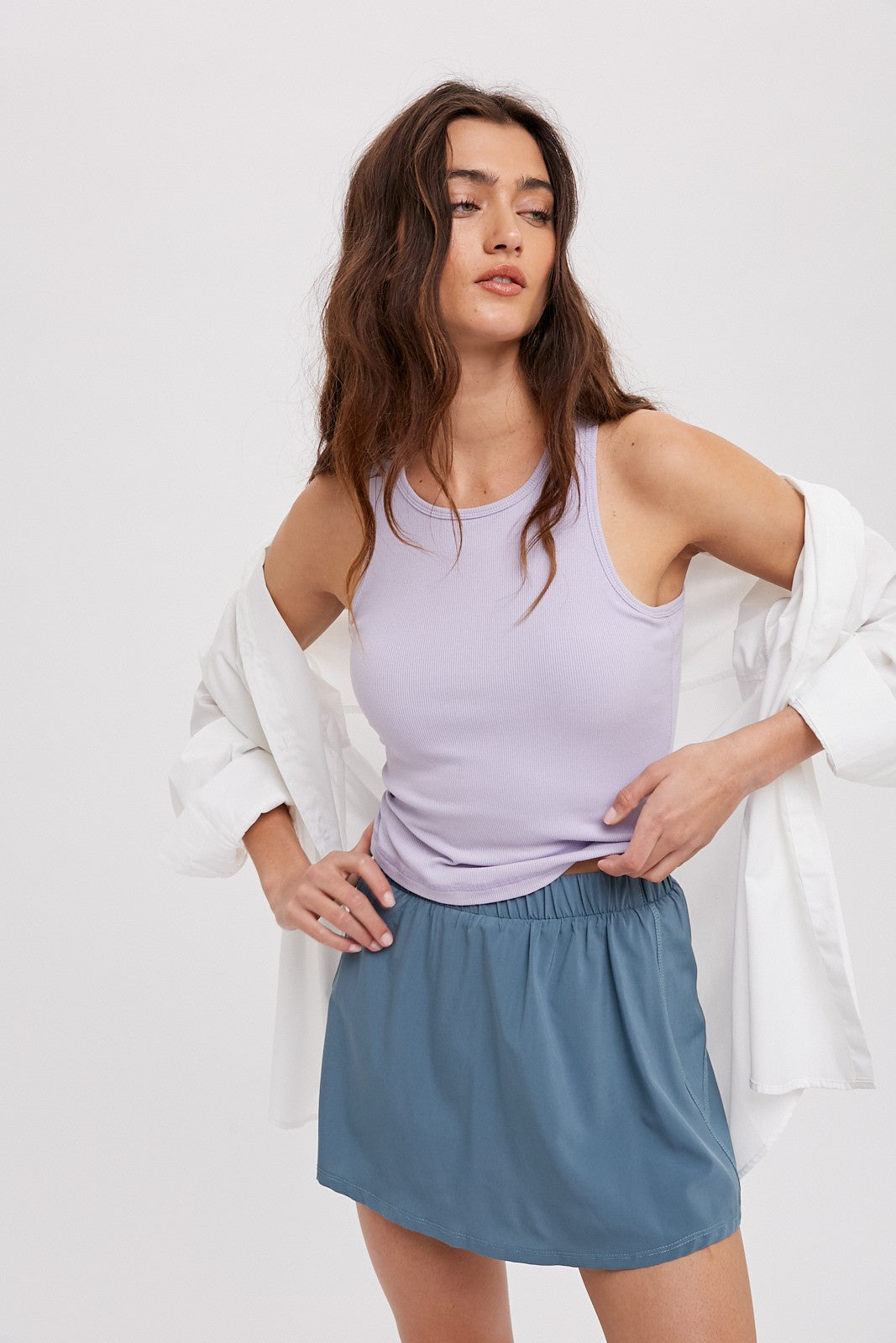 Be stylish and comfortable with the Taylor Tank Top. This tank top features a ribbed scoop neck and racerback for a classic fit and silhouette, and comes in two beautiful colors. Enjoy flexibility and breathability wherever you go.
